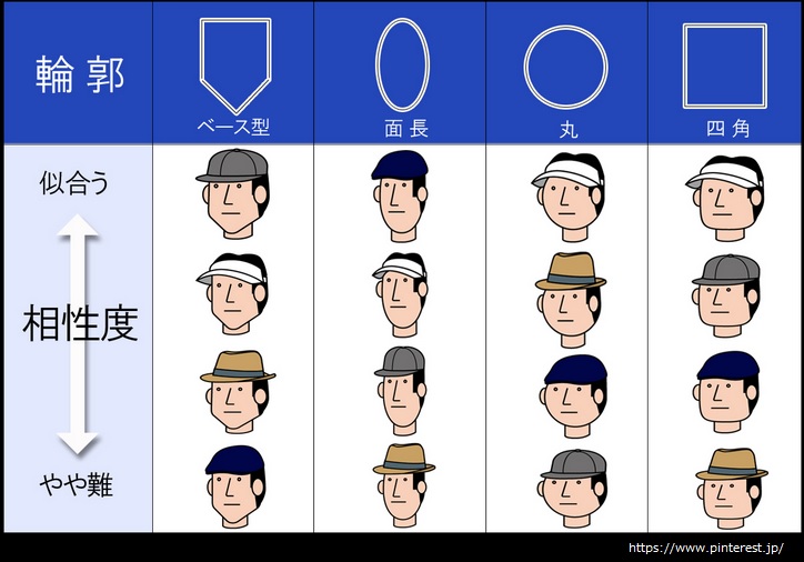 参考画像:https://www.pinterest.jp/似合う帽子