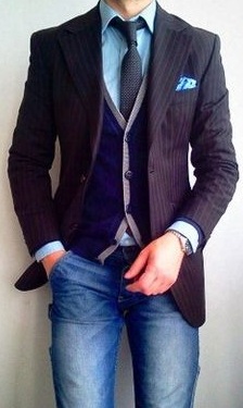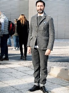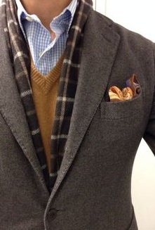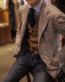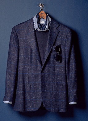 ノーネクタイでも、ツイード調の味わい深いジャケット