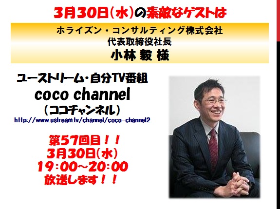 次回 Coco channel・第58回目 2016年4月6日(水)19時~20時
