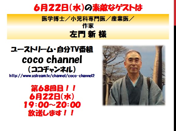 【”へぇ~”が満載!目からうろこ!人の五感とダーウィンの進化論】ゲスト: 医学博士・小児科専門医・産業医・作家: 左門新様/ココチャンネルvol.68-2016/06/22