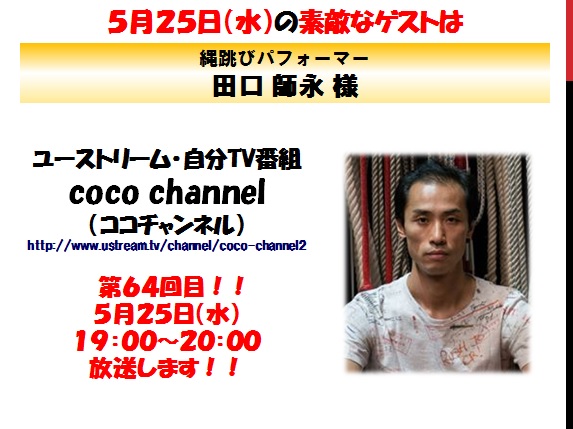 【”シルク・ドゥ・ソレイユ”で世界を旅した縄跳びパフォーマー/縄跳びパフォーマー:田口師永様】ココ・チャンネルvol.64 : 2016/5/25