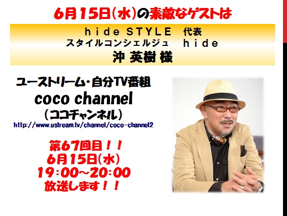 【本当の意味でのファッションアドバイスとは?】ココチャンネルvol.67ゲスト:hide STYLE 代表 ・ スタイルコンシェルジュ hide 沖英樹様/2016.6.15