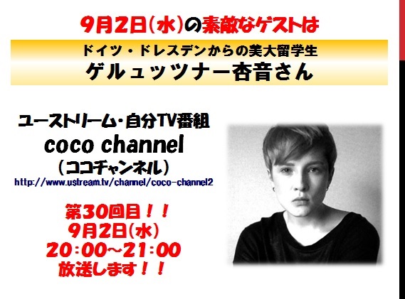 coco channel vol.30 【ドイツからの美大留学生 / ゲルュッツナー杏音さん】2015/09/02