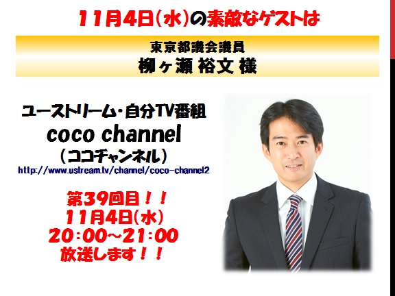 coco channel vol.39【東京都、いま何が課題か?/東京都議会議員 柳ヶ瀬 裕文様】2015/11/04
