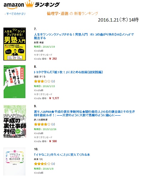 Amazon新着ランキング7位!・電子書籍【人生をワンランクアップさせる!男術入門】