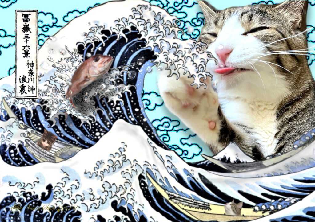 【 冨嶽三十六景 《神奈川沖浪裏》 と猫 】