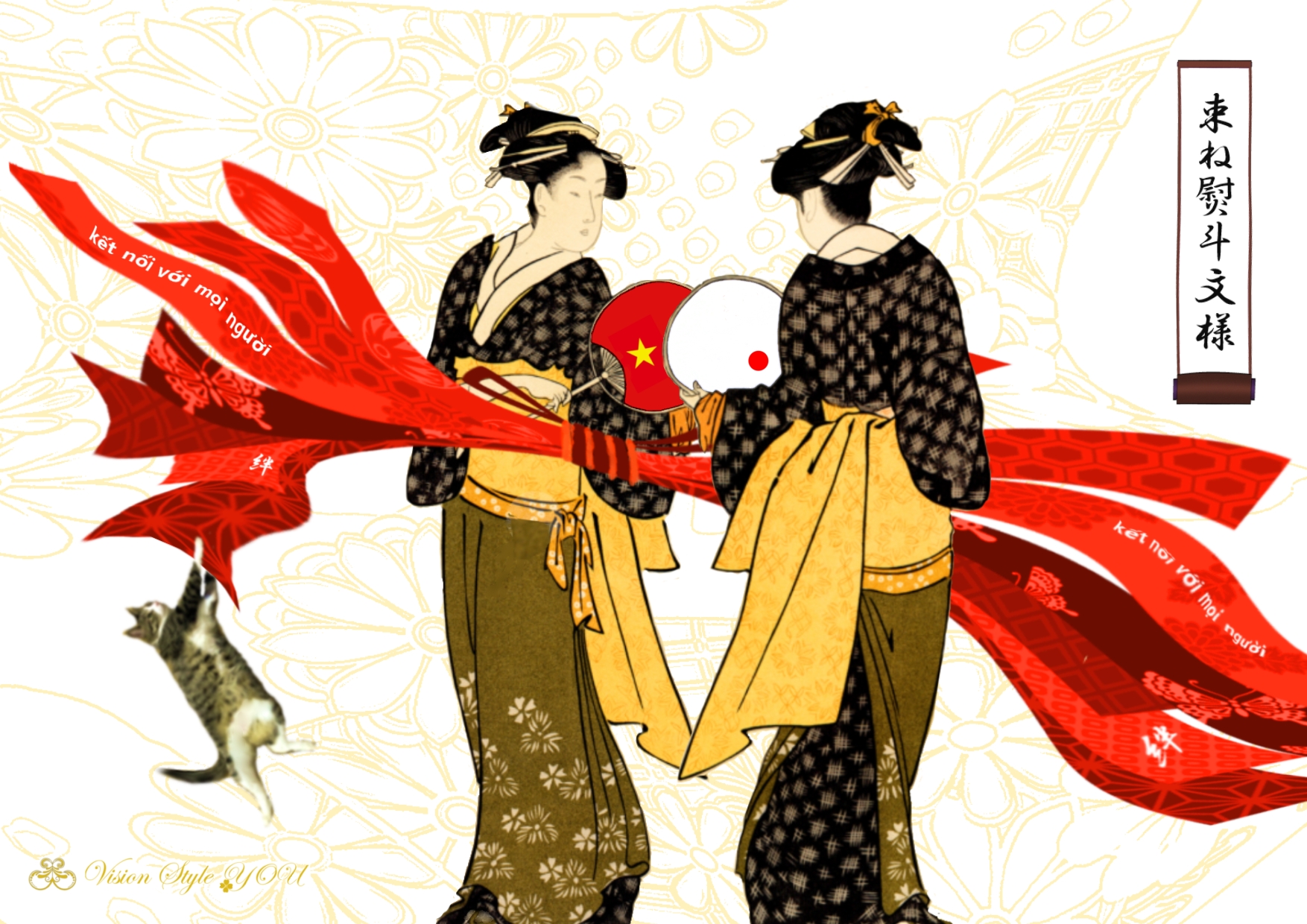 [ 束ね熨斗文様と猫 ] ベトナムバージョン