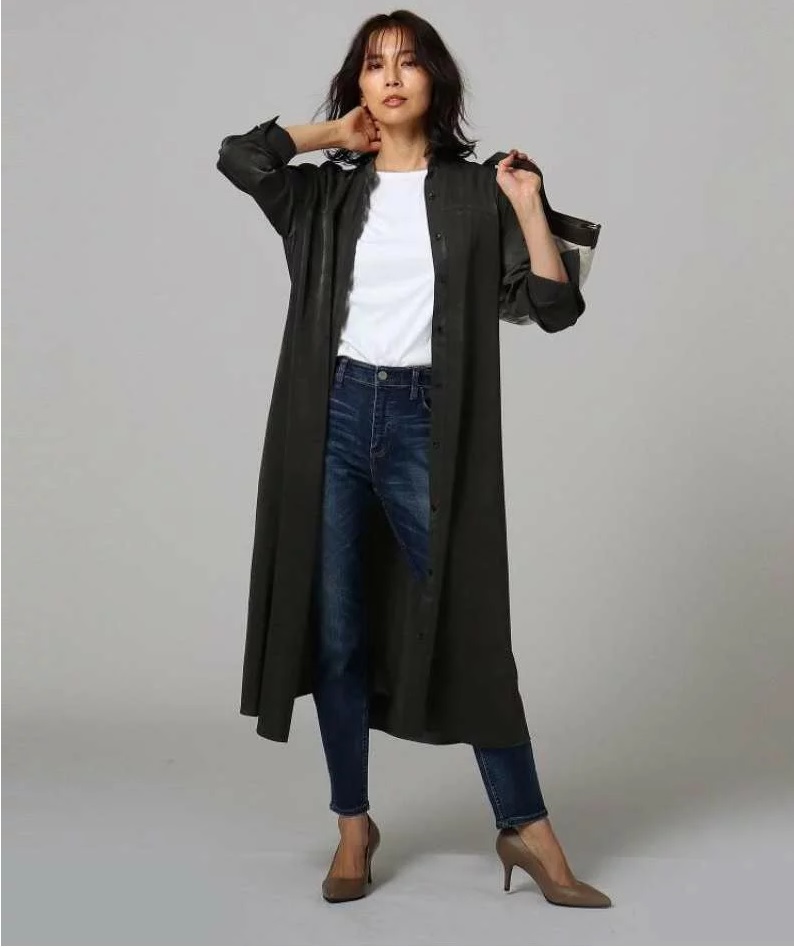 【UNTITLED】ピーチドレープサテンシャツワンピース
