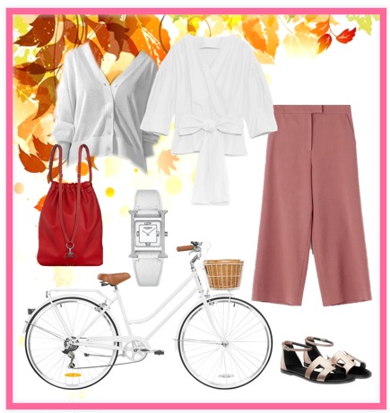 自転車に乗ってお出かけファッションです
